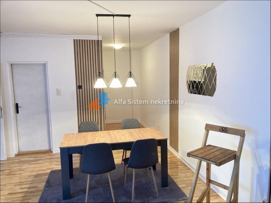 Sastoji se od velikog open space dnevnog boravka sa kuhinjom i trpezarijom, spavaće sobe i prostrane terase. Kompletno je namešten novim nameštajem – nikada korišćen.