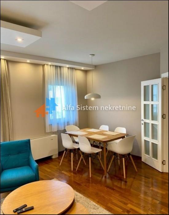 Po strukturi je dvoiposoban i sastoji se od prostranog dnevnog boravka sa trpezarijom, kuhinje, spavaće sobe, dečije sobe, kupatila, toaleta i hodnika. Stan je veoma svetao, potpuno namešten i opremljen svim neophodnim uređajima za udoban život. Grejanje je podno, a zgrada poseduje interfon i video nadzor.