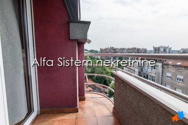 Stan se prostire na dva nivoa i ima dva kupatila, tri spavaće sobe i lepu terasu. privatno parking mesto+50 eur.