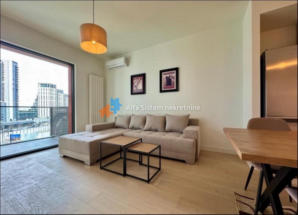 Opis stana: Stan se sastoji od ulaznog hodnika, prostrane dnevne sobe sa izlazom na terasu koja pruža pogled na reku Savu, kuhinje sa trpezarijom, spavaće sobe, kupatila i vešernice. Stan je neuseljavan i kompletno opremljen luksuznim nameštajem.