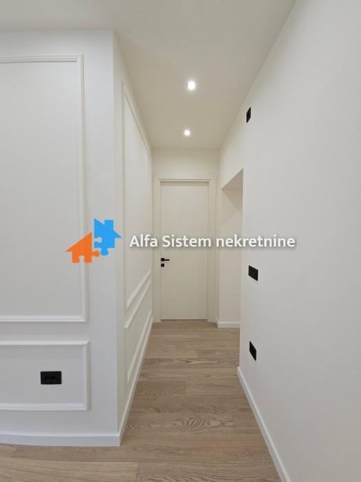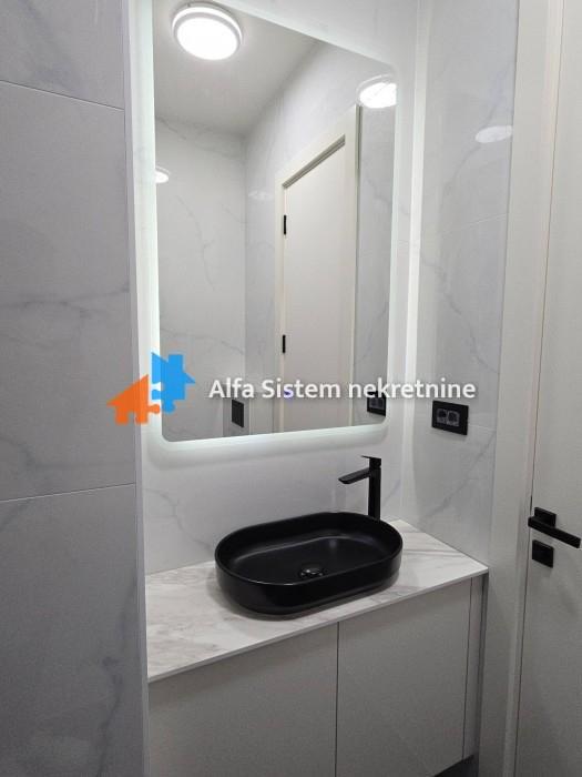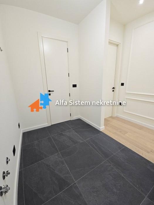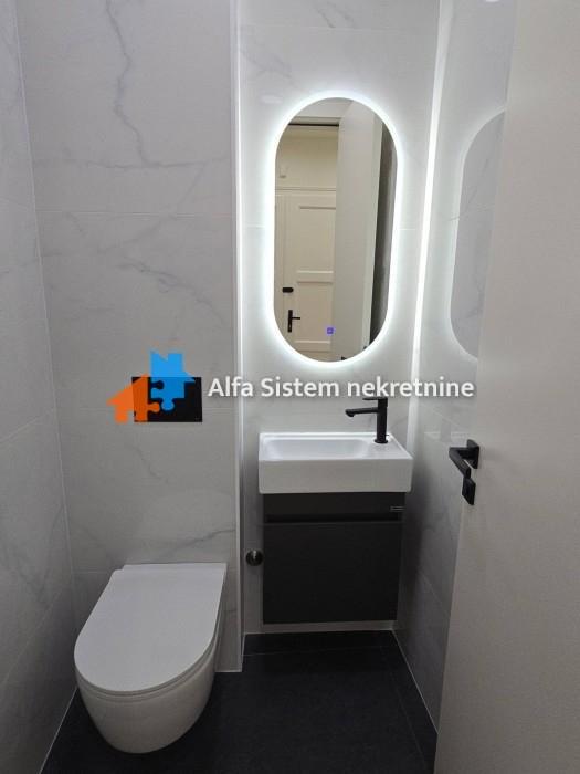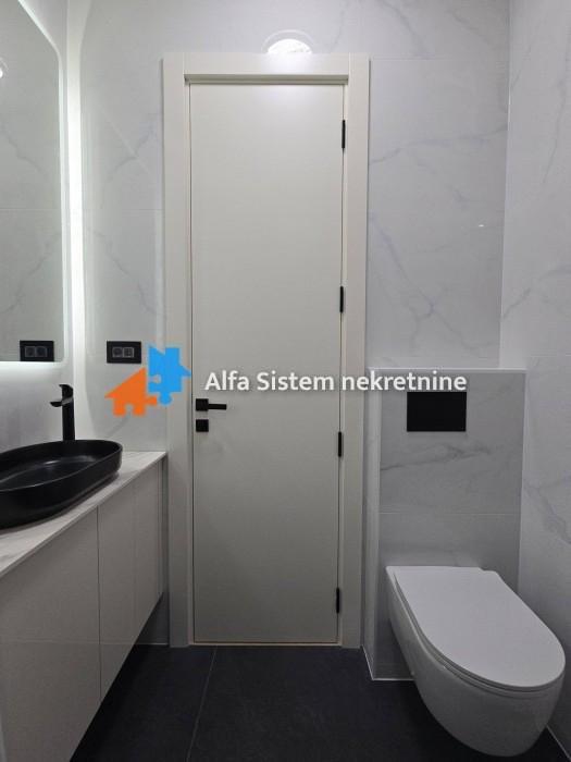 Stan je kompletno renoviran vrhunskim materijalima – zamenjene su sve instalacije, postavljen hrastov parket najviše klase, nova stolarija i moderna sanitarija. Kupatilo i toalet opremljeni su italijanskom granitnom keramikom, dok su sanitarije renomiranih brendova Hansgrohe i Villeroy & Boch. U stanu je postavljeno podno grejanje, što obezbeđuje visok nivo komfora i energetsku efikasnost.